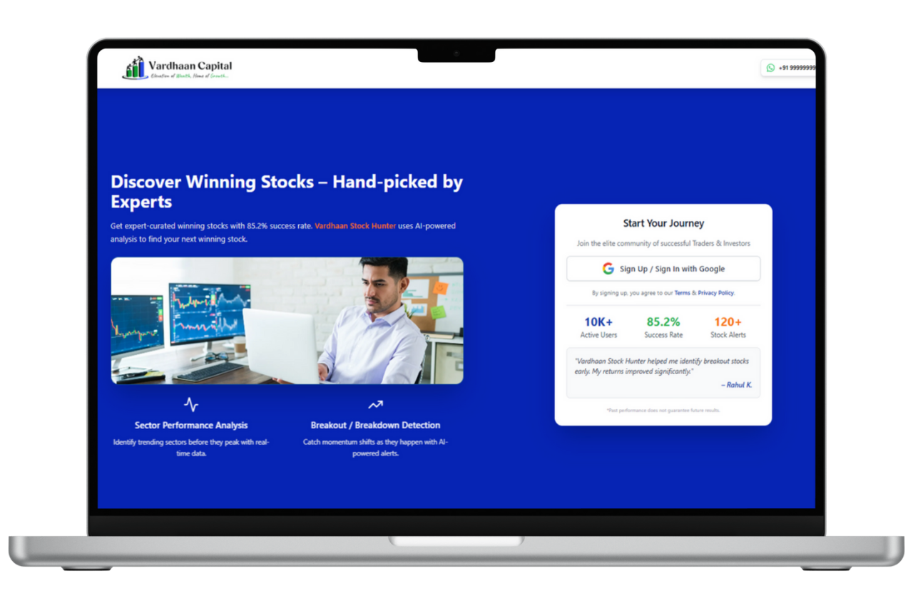 Vardhaan Capital’s Stock Hunter makes trading simple, strategic, and stress-free. Get curated intraday & swing trade picks, actionable alerts, and expert guidance to execute trades confidently.
